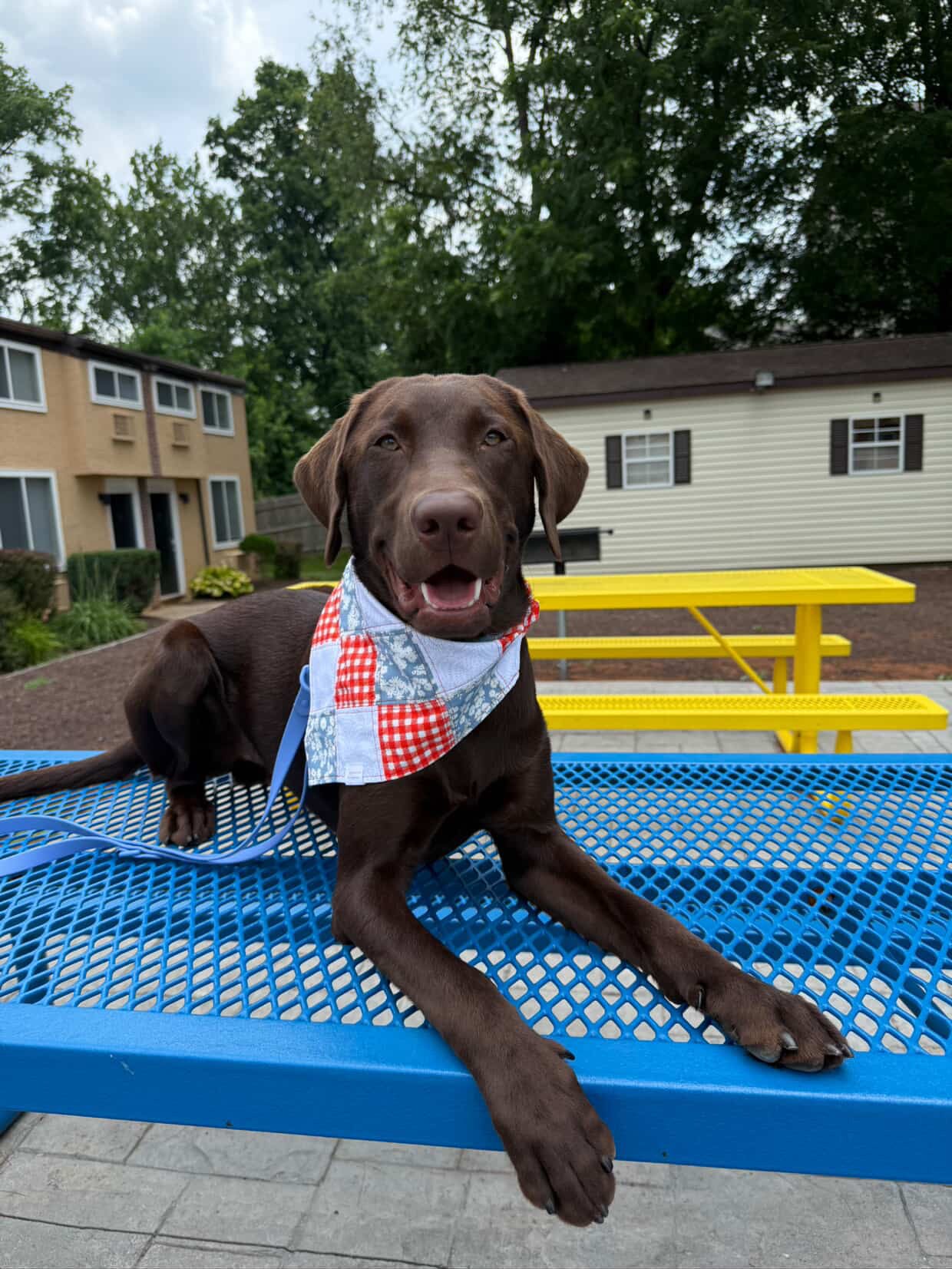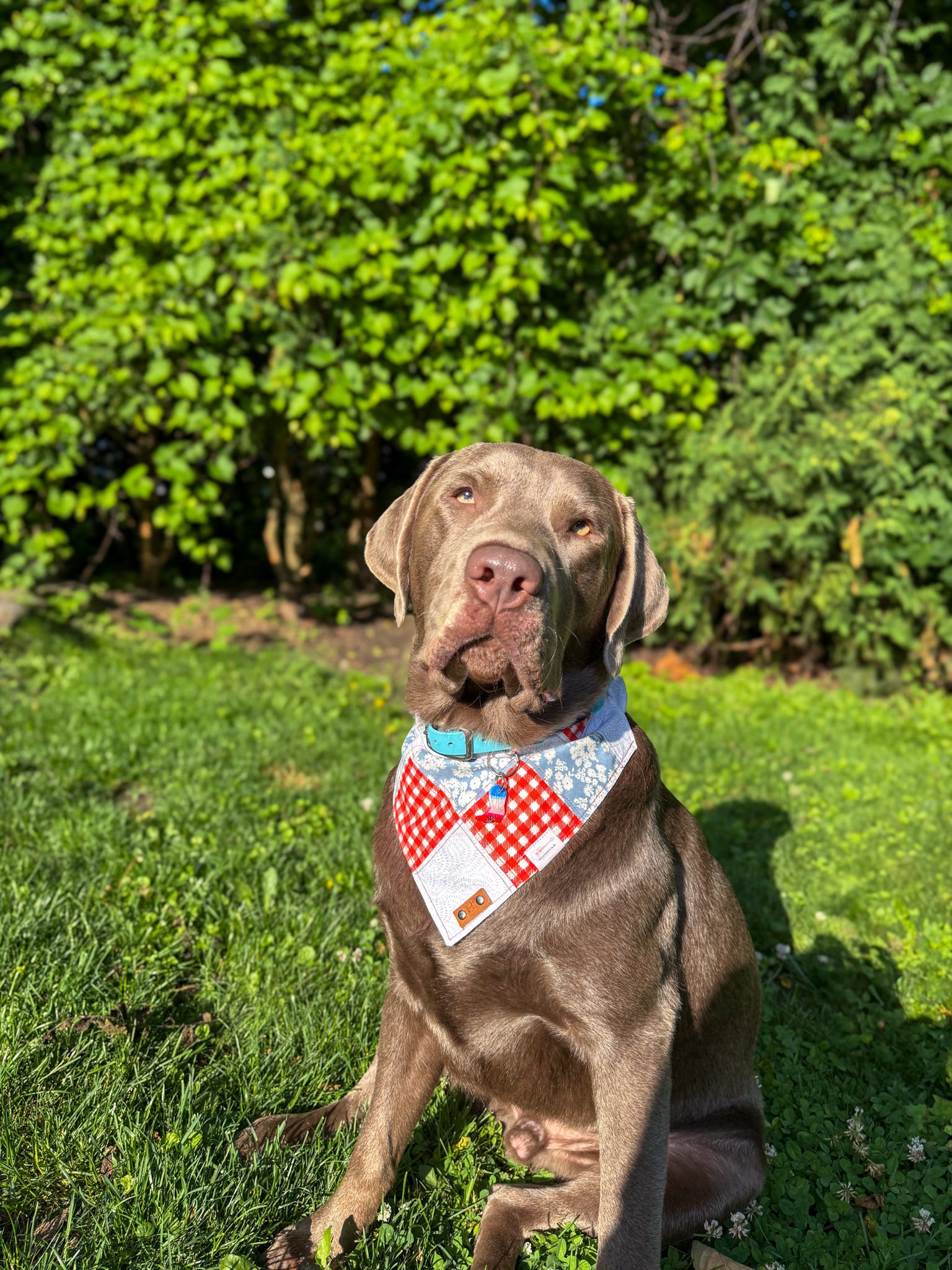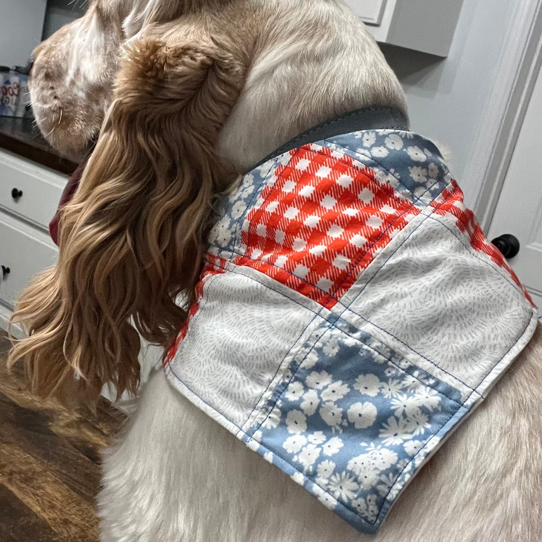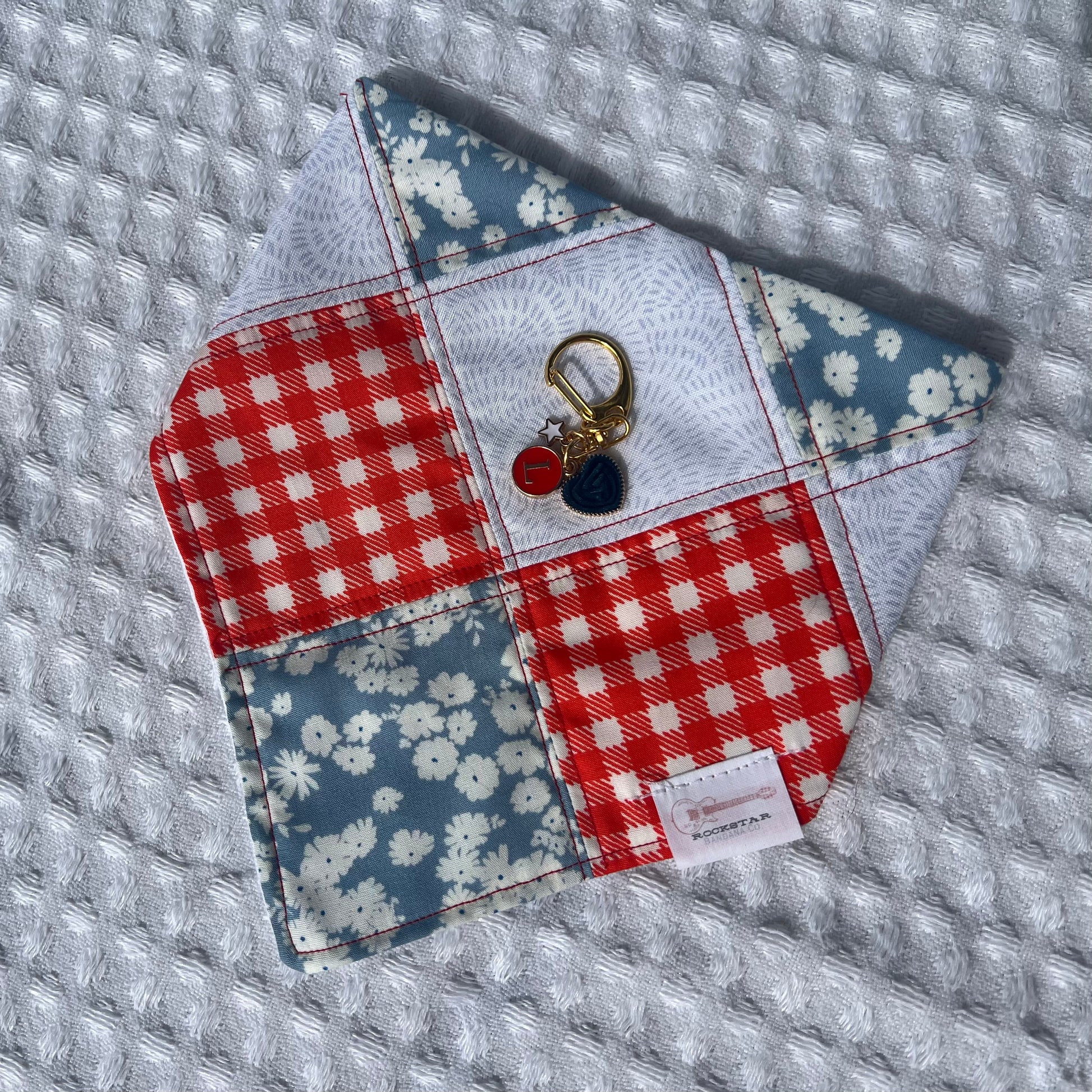 So cute! Blu wears his bandana almost everyday. I love how its like a scrunchie and easily slips on and off. The patchwork and design is so beautiful. The nametag just adds an even more special touch. Definitely would order again!